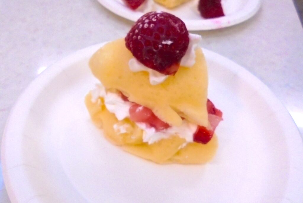 生地を作る人、いちごを切る人など分担作業で行い、最後はご自身で飾り付けをして完成。